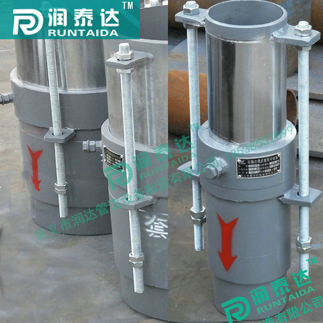 套筒補償器可分為單向型補償器和雙向型補償器兩種結構,雙向型補償器的特點是不論介質從補償器何端流入,其補償器兩端的滑動套筒總是自由滑動,達到雙向補償作用,增大補償量。而單向型補償器的特點是介質只能從補償器一端流入,補償器的滑動套筒一端滑動起到補償作用。適用于介質壓力≤2.5MPa,介質溫度-40℃~600℃的管道工程。套筒式補償器采用新型的密封材料柔性石墨環(huán),其具有強度大,摩擦系數小(0.04~0.10),不老化,效果好,維修方便等特點。疲勞壽命與管道相當。滑動表面經特殊處理,在鹽水、鹽溶液等環(huán)境下耐腐蝕性能好,比奧氏體不銹鋼高50倍以上。同時,多年后補償器因磨損導致密封效果減弱時,可再次緊固法蘭,增強密封性能,也可將螺栓松開,取下壓圈,再裝進一層或兩層密封環(huán),壓緊壓圈,繼續(xù)使用。
