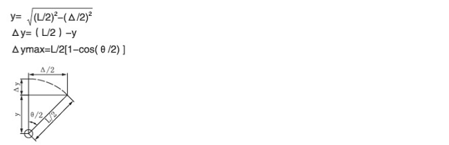 ∏型組合在吸收熱膨脹時,當(dāng)力偶臂旋轉(zhuǎn)到θ/2時,管道將出現(xiàn)較大的離心徑向擺動量△y,△y計算公式如下:圖(6)
